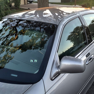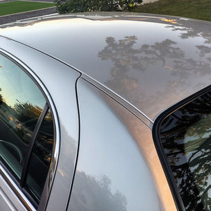 9.5 of 10. Glossy original silver paint. Body panels and gaps are smooth and straight. Very nice original grille and chrome trim. Full cut-buff-polish makes the pristine original paint pop. Original xenon headlamps and tail lights are crystal clear. Windshield and all window glass and weather stripping are excellent (small repaired star in windshield).